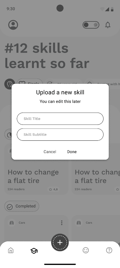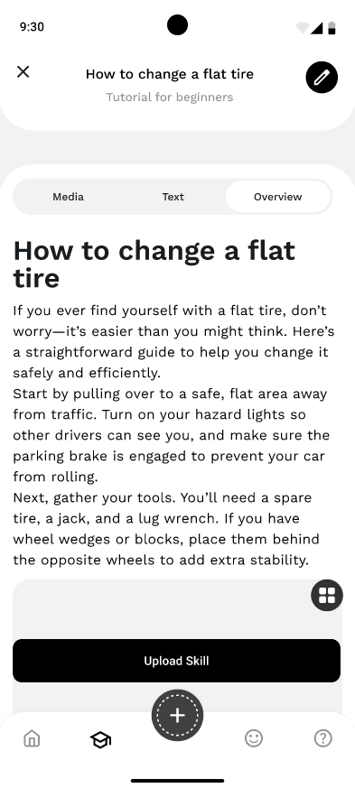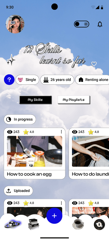 The final skill overview also felt too crowded, so I divided the content into chapters and introduced a cover page, editable only by the creator in the Upload Skill section. This cover page is the first thing users see when they tap on a skill card.