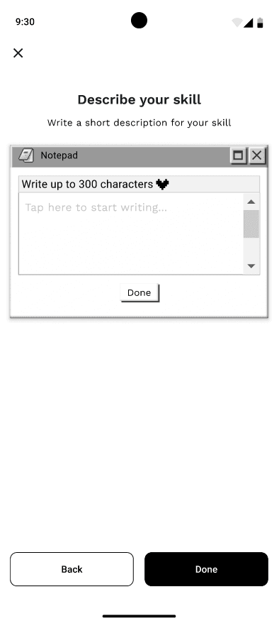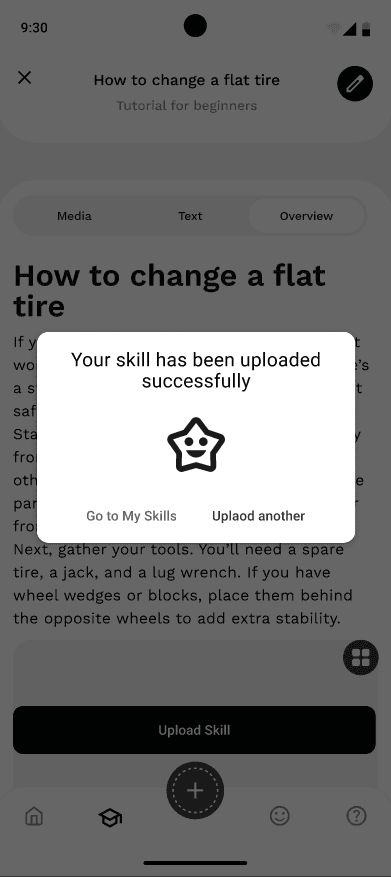 After receiving initial user feedback, I opted for a cleaner look on the Upload Skill screens. Instead of using modals over the main screen, the flow now opens in a dedicated section that guides the user step by step.