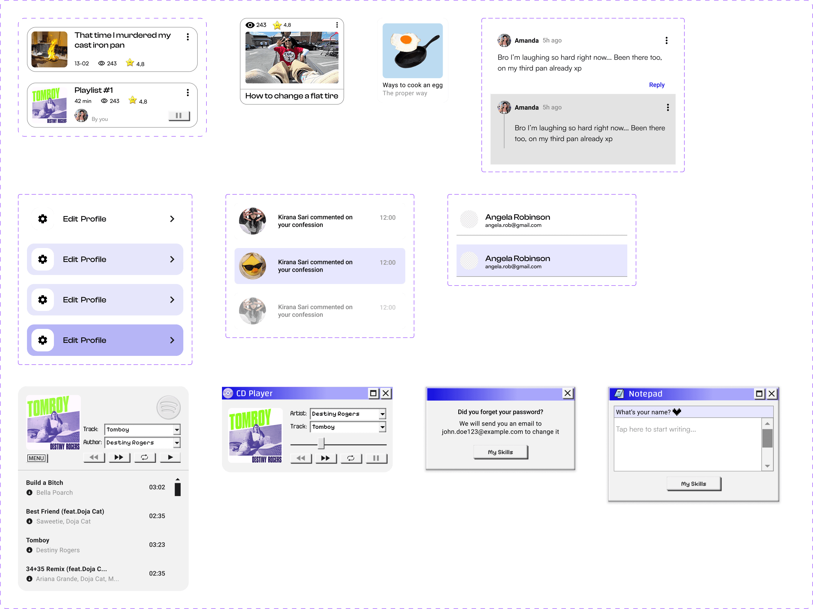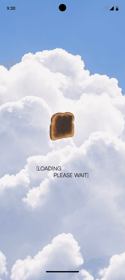 For the app icon, I went for a burnt piece of toast. The project centers on everyday tasks young people face, with a message that it’s okay when things don’t go perfectly—life is messy and imperfect, and that’s normal. The burnt toast captures this idea while its raw, analog look ties into the project’s Y2K trashy aesthetic. It's also integrated into the app as a loading element.